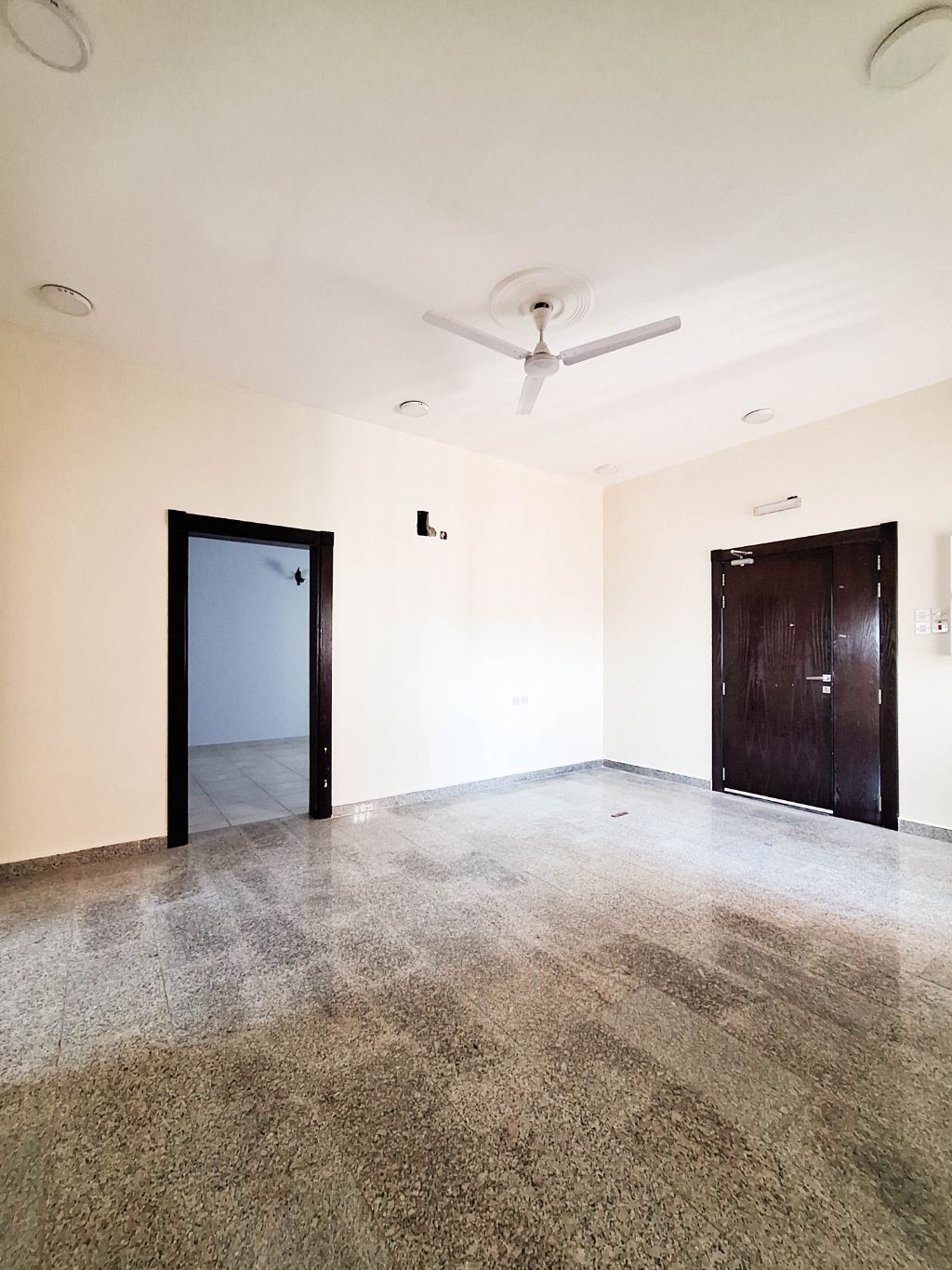 Apartment for rent in the Daih area. Features of the apartment include three bedrooms, two bathrooms, a living room, a kitchen, and a parking space. The monthly rent is 180 Bahraini dinars, excluding electricity and water fees. For inquiries, please contact the following numbers harbourbh, harbourrent, AH - FR 01889