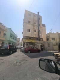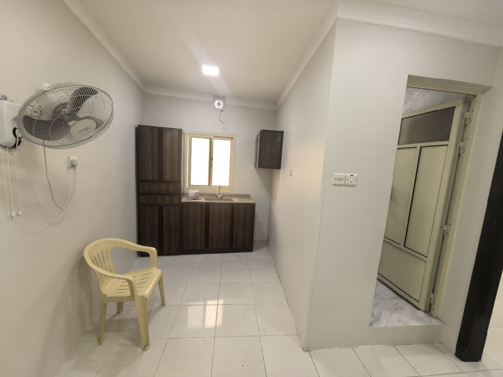 A residential apartment for rent, including water and electricity, consisting of one bedroom, a living room, a kitchen, and a bathroom. The price is 130 dinars. Location: Muharraq.