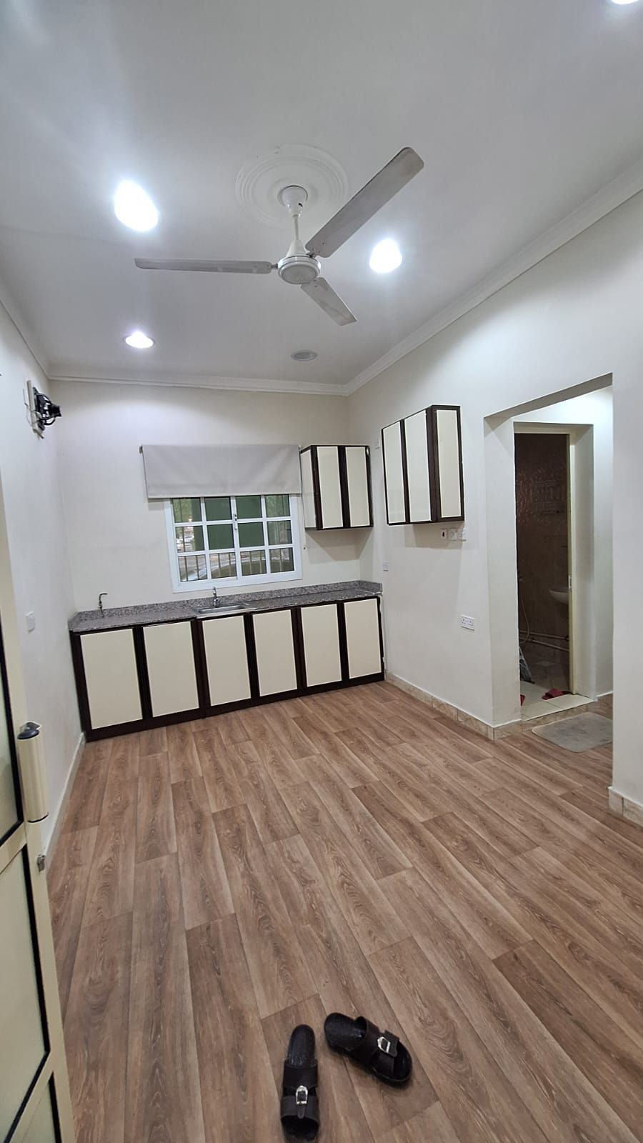 For rent: An apartment in Isa Town, including electricity, with a private entrance. The price is only 140. It consists of 1 large room, a bathroom, and an open kitchen connected to the living room. For contact.