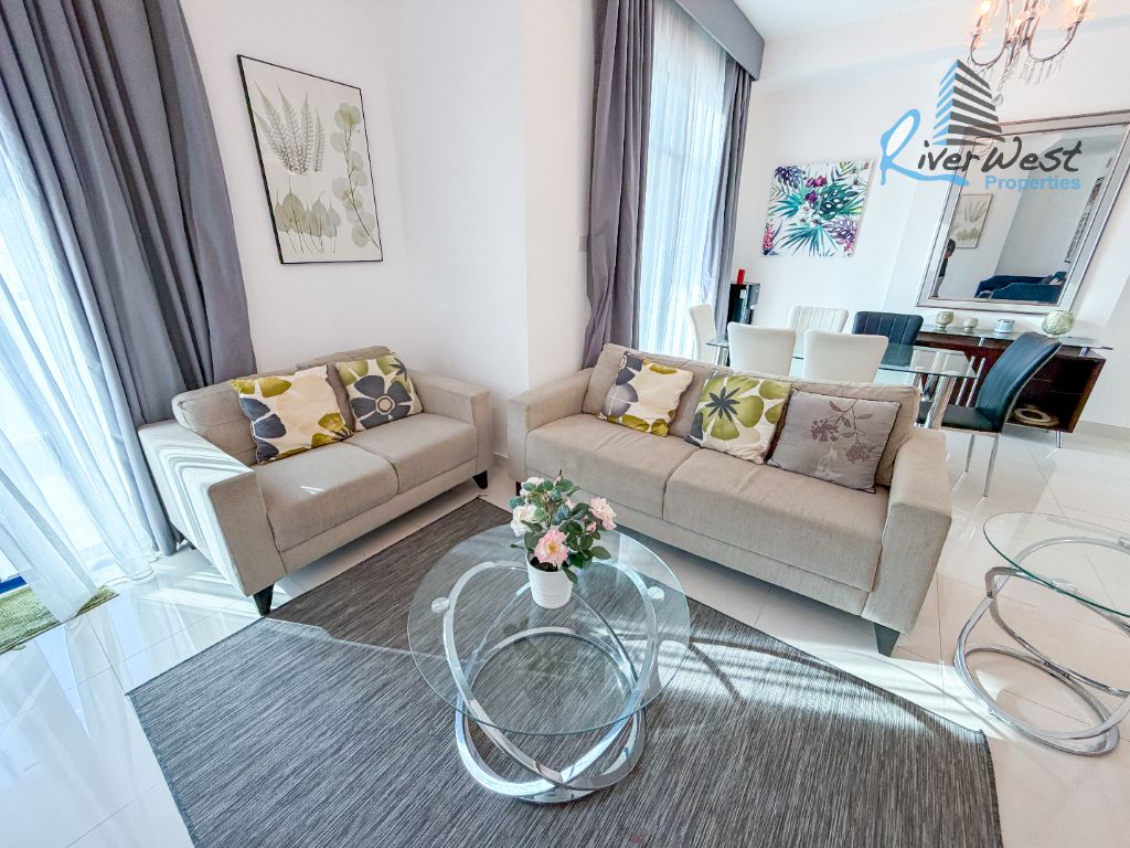 For rent at BD500 (inclusive), a 118 SQM fully furnished duplex property. Features include 2 bedrooms (duplex layout), 3 bathrooms, a spacious living and dining area, an open kitchen with modern appliances, a city view balcony, and bright, airy interiors. Modern design highlights, prime Juffair location, comfortable layout with quality furniture, perfect for modern city living.