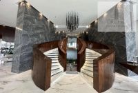 A studio for rent in Spiral Orchid Residence in the Seef area near the Water Garden, featuring a beach, two swimming pools (indoor and outdoor) a cinema, men'gym, a women'gym, a spa, sauna, jacuzzi, a steam room, a children'play area, sports hall with paddle and squash, and a basketball court. The studio is fully furnished with an area of 42 SQM, and the required rent is 350