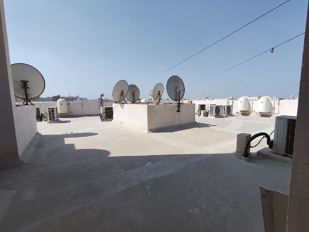 Sanad, close to Arab Bounty Sweets. Rooftop studio flat for rent with AC. BD140 with Ewa, BD30 limit. 1 room, close kitchen, and 1 bathroom. Available elevator and car parking. Ref No K291002. Contact.