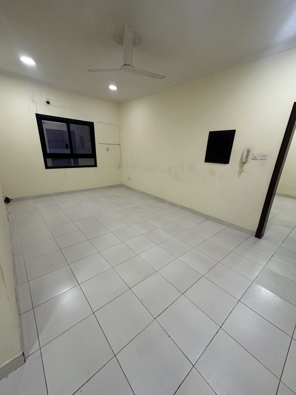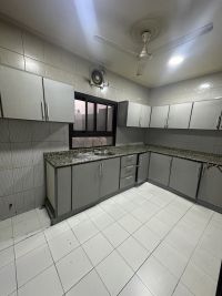 An apartment with electricity included in Al-Hajiyat, containing two large rooms, a spacious hall, a kitchen, two bathrooms, an elevator, and a parking space, for 250 dinars inclusive.