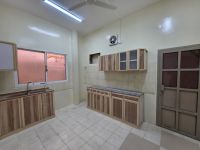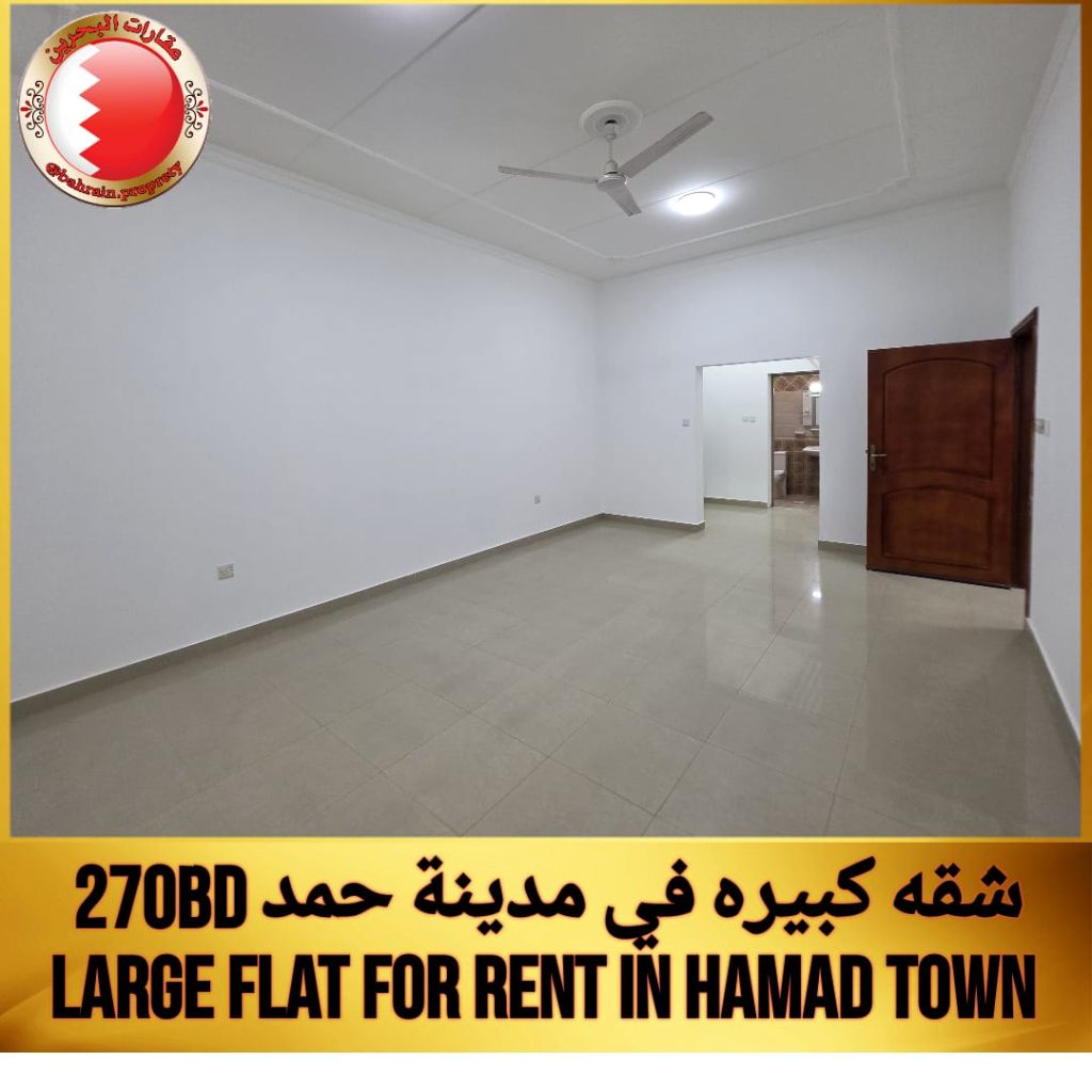 For rent: A large apartment in Hamad City, Eighth Roundabout, consisting of a ground floor with a small yard, 3 bedrooms, a kitchen, a living room, 3 bathrooms, and a storage room. The required rent is 270 dinars, including electricity and water.