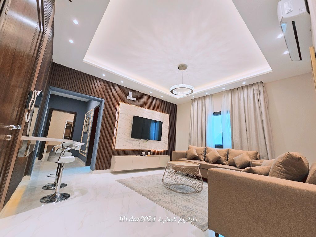 In the city of Al - Busaiteen, a luxurious apartment for rent with hotel - standard finishing, fully furnished, consisting of two master bedrooms, three bathrooms, a spacious living room, a kitchen, and a parking space. The price is 440 dinars including electricity. For contact, call