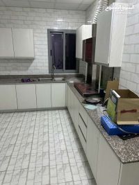 An apartment for rent in Hidd consisting of 4 bedrooms, 4 bathrooms, and a furnished kitchen, with air conditioning, a balcony, and a parking space. The price is 350 dinars, not inclusive