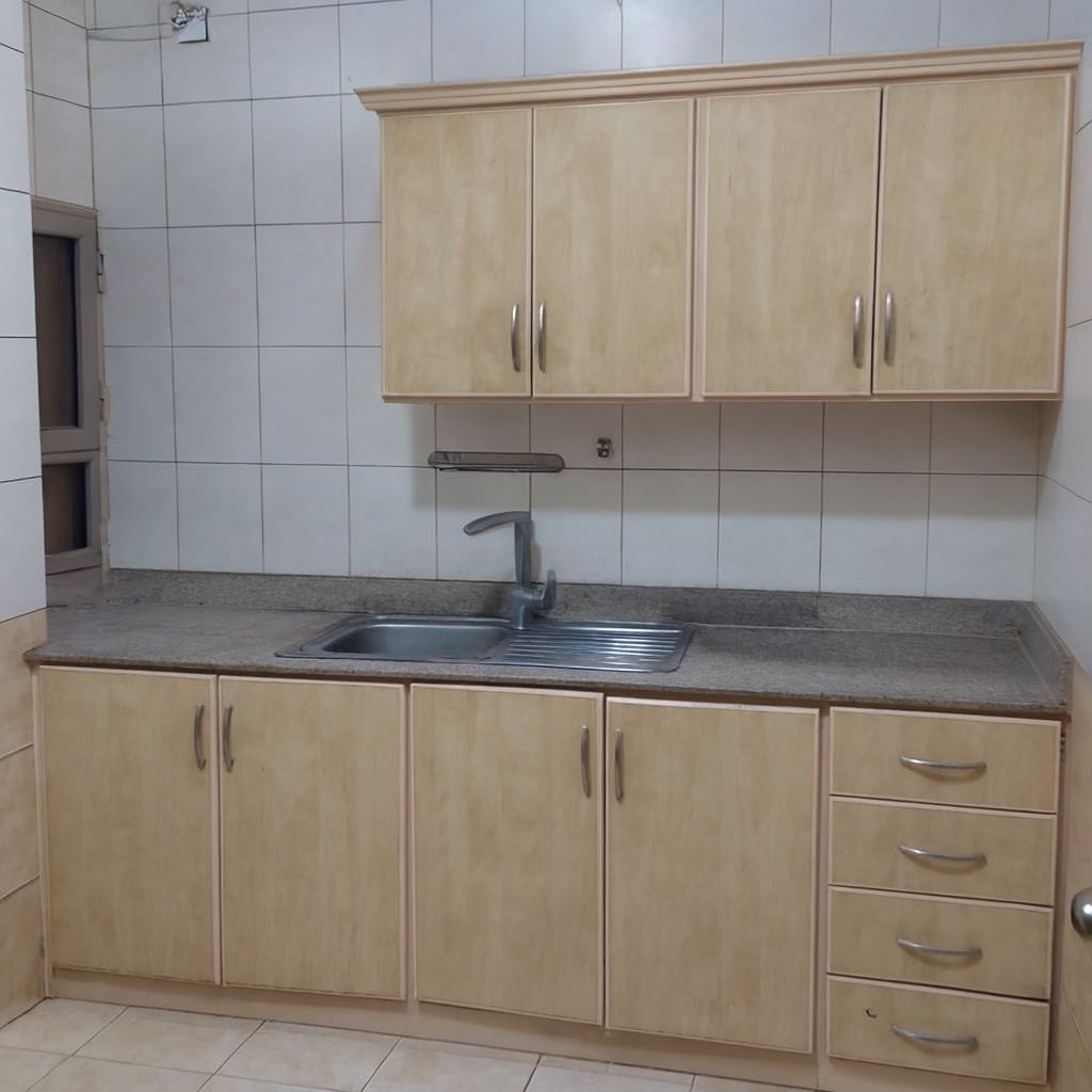 For rent: An apartment in the Saharkan area consisting of two bedrooms, two bathrooms, a living room, and a kitchen. Code 008. Final price is 150 dinars only, excluding electricity.