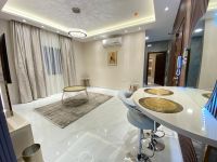For rent: An elegant, fully furnished apartment in the Al Bseisin area. It consists of 2 bedrooms, including a master bedroom, 2 bathrooms, a living room, and a kitchen. It has an elevator and private parking. The price is 420 Bahraini dinars, including electricity.