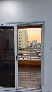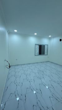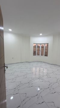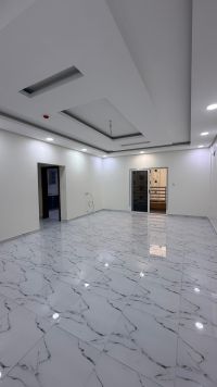 The apartment consists of 3 rooms in addition to a maid's room, 4 bathrooms, a large living room kitchen with a balcony and a beautiful view on the second floor, a parking space, and a lift, in addition to a guard and cleaner for the building. The location is Al-Hijjat, near the Exhaust exhibition, and the annual rent is 350, including electricity.