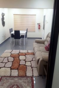 For rent: A very deluxe apartment in the Diya area, located at the entrance of Diya. It consists of 3 bedrooms, 2 bathrooms, a kitchen, and a living room. Fully furnished. Code 002. Rental price is 250 dinars, including electricity.