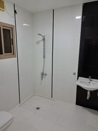 An apartment is available for rent in Al Dair, near the airport. The apartment features a private entrance, three bedrooms, three bathrooms, an air-conditioned living room, a kitchen, and a storage room. The rent includes electricity and water for only 250 Bahraini Dinars, and the apartment is rented to families.