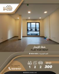 For rent: An elegant, semi-furnished apartment in the New Hidd area, consisting of two bedrooms, a spacious family living room, an open kitchen, two bathrooms, air conditioners, and a fully equipped kitchen. The price is 300 dinars, including electricity with a consumption limit of 40 dinars. For inquiries.