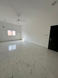 For rent, a spacious and clean apartment, first tenant, in a new building in Al-Hajiyat - a residential area near Al-Wafa Park and Al-Jazari Mosque. It consists of 3 spacious bedrooms, 3 bathrooms, a living room, and a kitchen, with an electric elevator. Rent is 230 dinars (not inclusive).