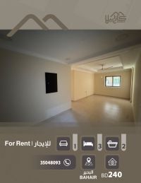 For rent: An apartment in Al Buhair, near the Independence Walk. First, apartment details: 3 bedrooms (including one master bedroom), 2 bathrooms, a kitchen, and a balcony. Second, facilities and services: shaded parking, elevator, surveillance cameras, and close to all commercial shops and services. Price: 240. For contact.