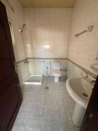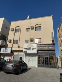 For rent in Riffa East, Al Hajiyat: A two-bedroom, two-bathroom apartment with a kitchen and a living room. The building is on a well-known commercial street. Price: 130 dinars. Abdul Fattah Hassan Nazzar Al Sagheer, Office: Masar Al Mustaqbal Real Estate.