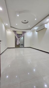 For rent: An apartment in Al-Hadd with air conditioning and curtains, consisting of 2 bedrooms, 3 bathrooms, a living room, a kitchen, and a balcony. It includes an elevator and a parking space. The rental price is 220 dinars. For contact: Ain Al Bahrain Real Estate Center (a licensed sales agent by the Real Estate Regulatory Authority), license number (SA201803 / 0013), telephone.