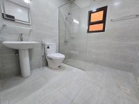 An apartment for rent with air conditioning in Sar. The apartment consists of two bedrooms, two bathrooms, a large living room, a kitchen, an elevator, and a parking space. The rent is 225 Bahraini dinars. For inquiries, note that there is also an apartment for rent with three bedrooms in the same building.