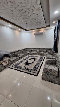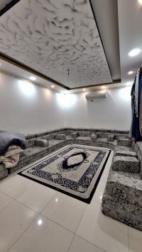 For rent: An apartment in Riffa Al Hajiyat, inclusive of electricity, semi-furnished. It consists of 4 rooms, a separate majlis, 4 bathrooms, a kitchen, a large hall, an electric elevator, and a car parking space. Price is only 370, inclusive of electricity, semi-furnished.
