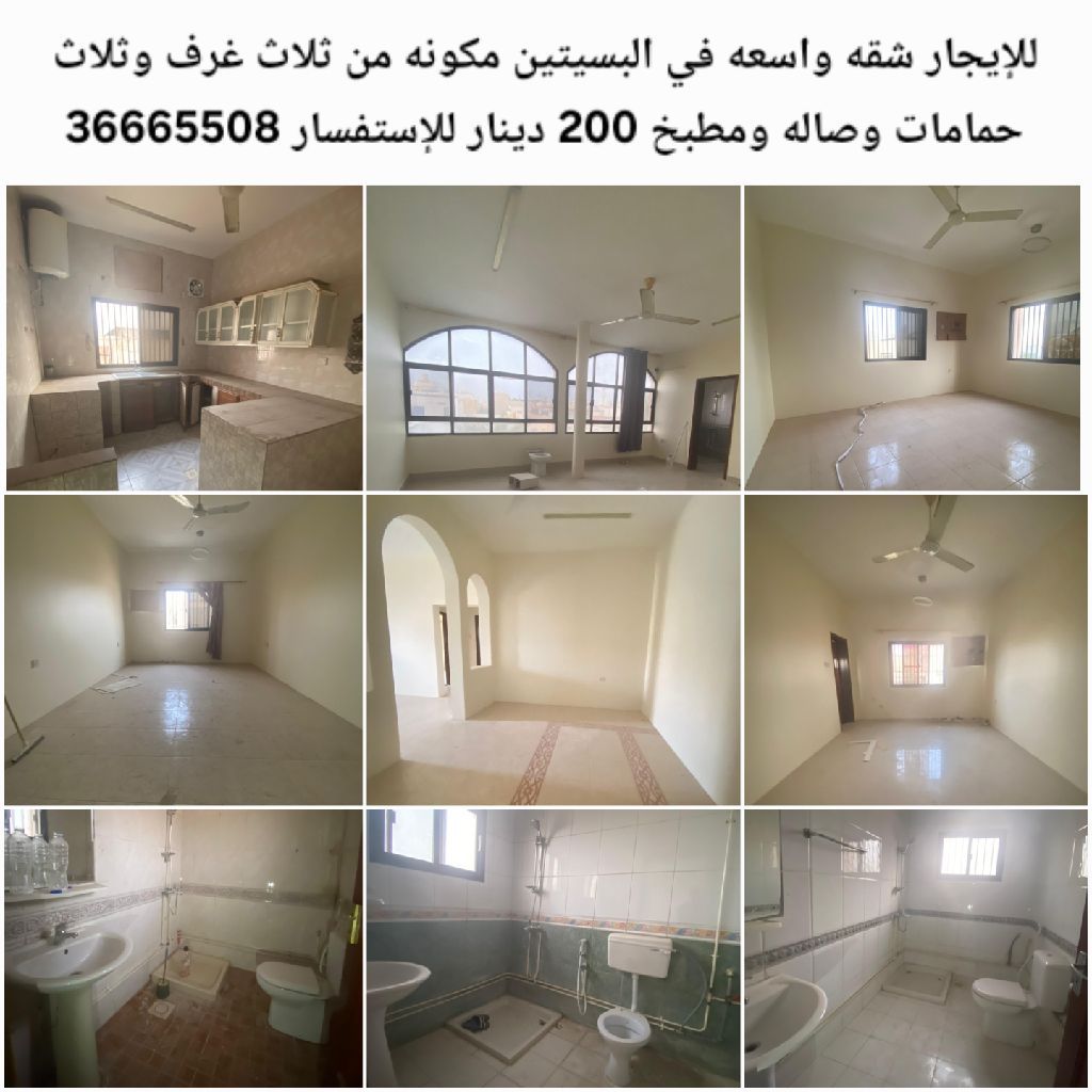 An apartment for rent, spacious in Al-Busaiteen, consisting of three rooms, three bathrooms, a hall, and a kitchen for 200 dinars.