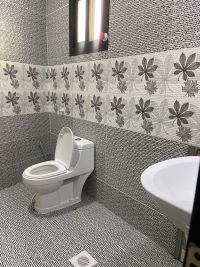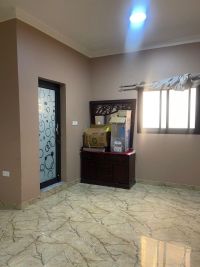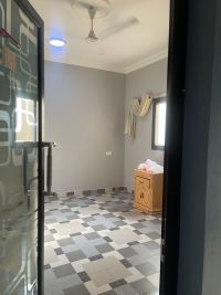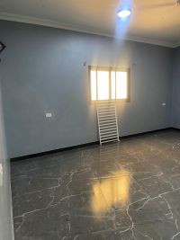 For rent: An apartment in Hamad City, Roundabout 20, consisting of three rooms, three bathrooms, a hall, a kitchen, a balcony, and laundry facilities. Electricity is included for 270.