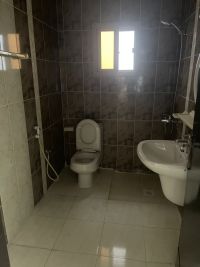 For rent: A large apartment in Al-Budaiya with two bedrooms, two bathrooms, a living room, a kitchen, and a balcony. Price: 200 dinars, located near Zaidan markets.