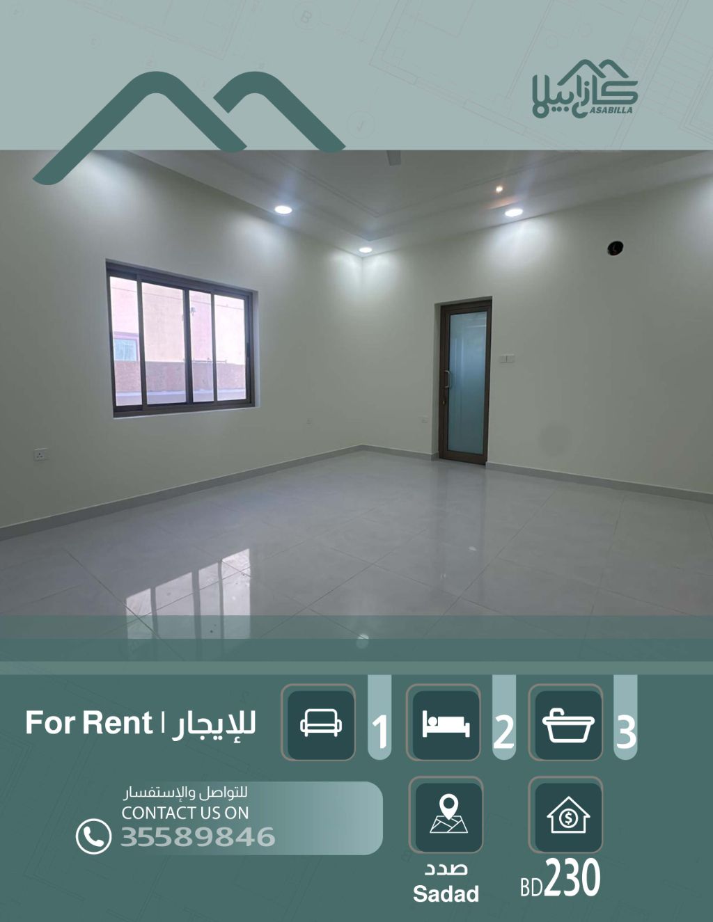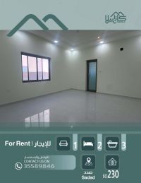 A luxurious residential apartment for rent - first occupant, Sadd area - near Roundabout 13, a prime location within an integrated services area. Apartment specifications: two master bedrooms with their own bathrooms, a spacious living room, a bathroom in the living area, a kitchen, two car parking spaces, an elevator, and an integrated security and protection system. Monthly rent: 230 dinars (excluding electricity and water). For contact and inquiries.