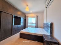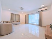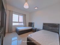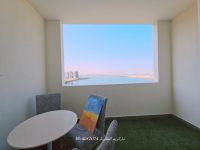 In Al-Hidd city, a luxurious apartment for rent, fully furnished with a sea view, 3 bedrooms, a spacious living room, 4 bathrooms, a kitchen, a maid's room, 2 balconies, and a parking space. Price: 320 dinars, excluding electricity. For contact, call.