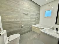 A semi-furnished apartment for rent in the SAND area, apartment number 2, ground floor, 3 bedrooms, 3 bathrooms, kitchen, living room. Furnishings include air conditioners, refrigerator, washing machine, oven, microwave, and jacuzzi. 300 dinars, excluding electricity.