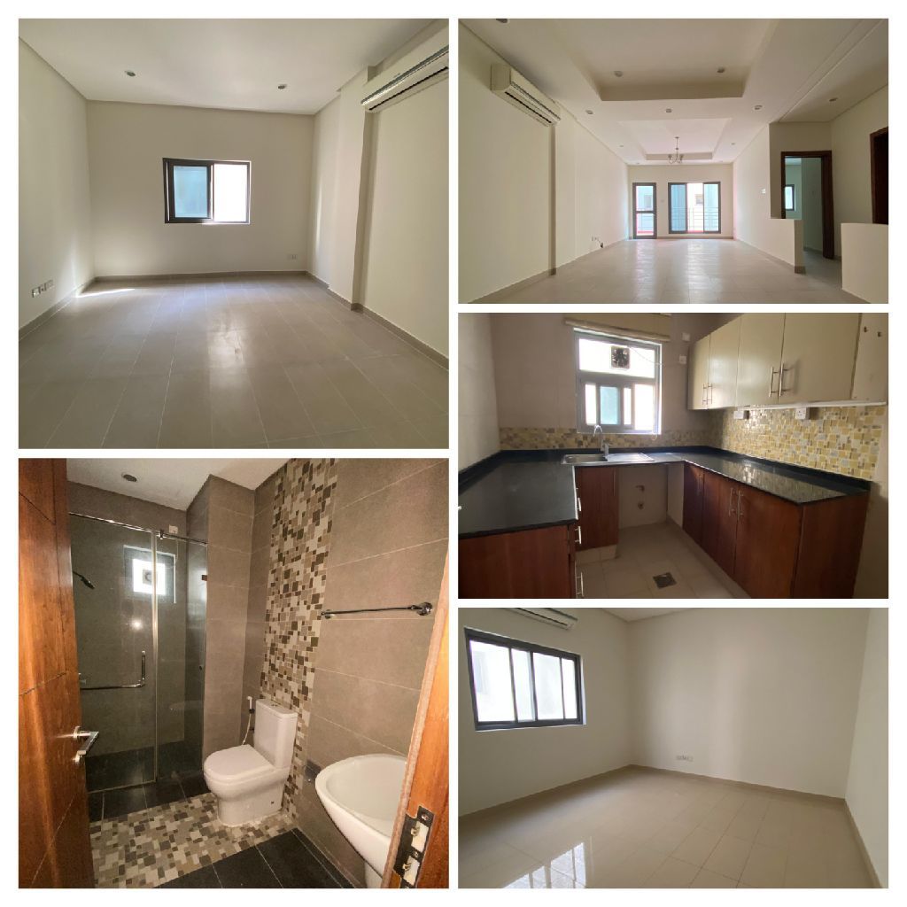 For rent, an apartment in Al-Hadd consisting of two rooms, two bathrooms, a hall, a kitchen, and a balcony for 180 dinars.