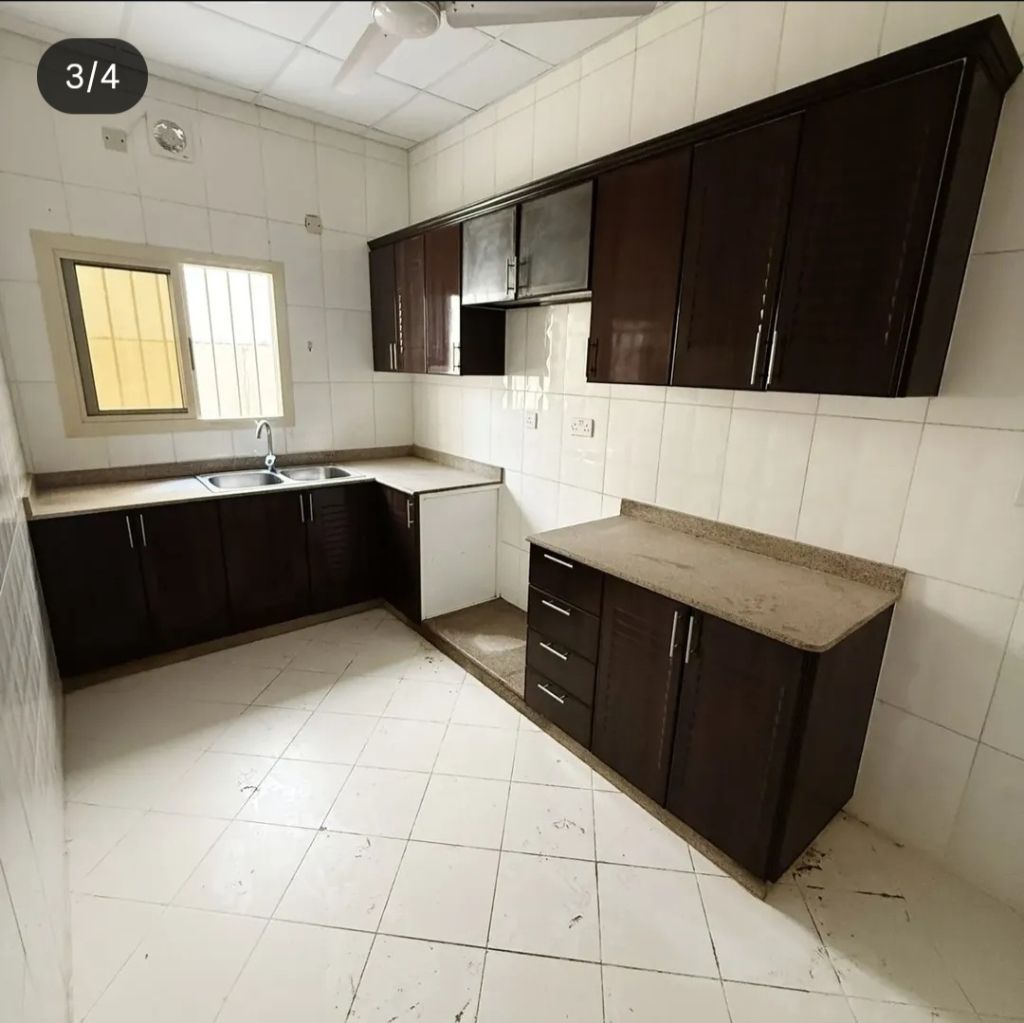 An apartment for rent in Al-Hadd Al-Jadeed with air conditioners, consisting of 2 bedrooms, 2 bathrooms, a living room, a kitchen, a balcony, an elevator, and parking. The rental price is 280 dinars, including electricity and water. Contact for more information.