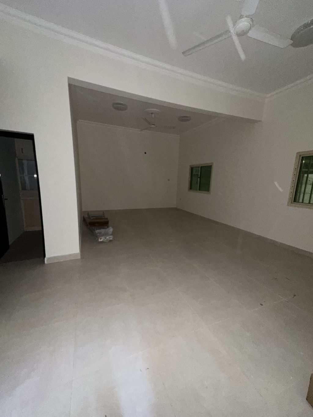 For rent: a very spacious and clean apartment in Al Buhair, ground floor, near Alba Club. It consists of 3 large rooms, a very spacious hall, kitchen, storage, and shaded parking for 280 dinars, negotiable, without electricity.