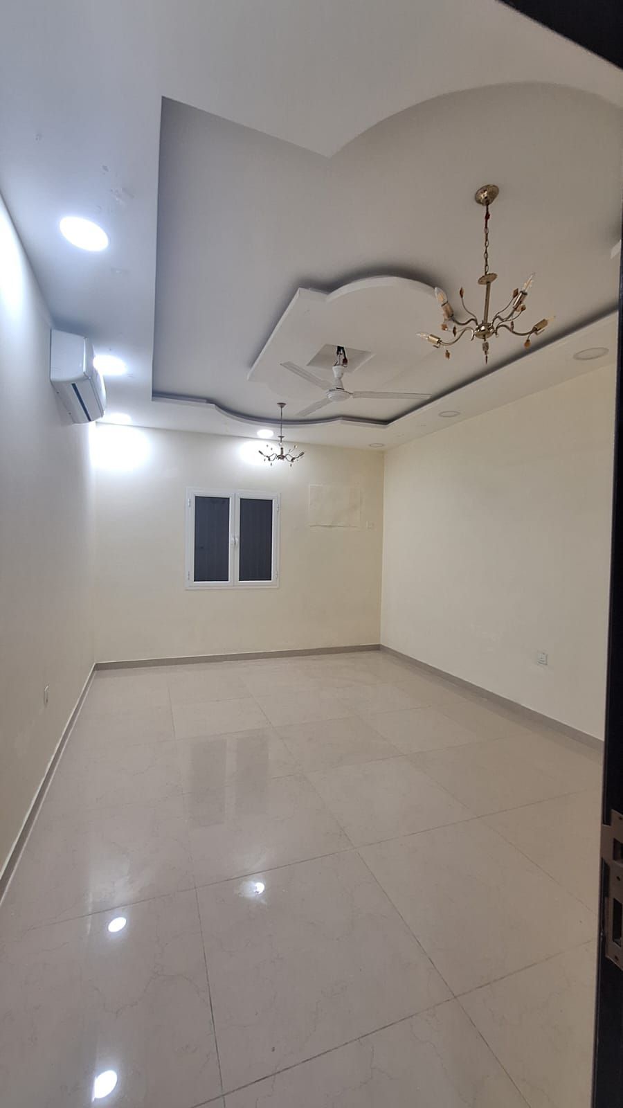 For rent, an apartment in Riffa Al Hajiyat, including electricity and air conditioners, consisting of 4 rooms, 4 bathrooms, a kitchen, and a large hall. Price: 380.