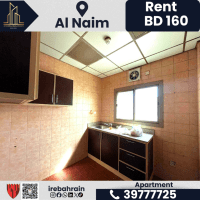 A residential apartment for rent - Al Naeem, Manama - 160 Bahraini Dinars. Two bedrooms, living room, one bathroom, closed kitchen, separate water meter. Family apartment. Location: Al Naeem, Manama, near Al Naeem Health Center and Al Naeem Police Station. Easy access to bus station, Snaps, and Seef. Rent: 160 Bahraini Dinars per month. For contact.
