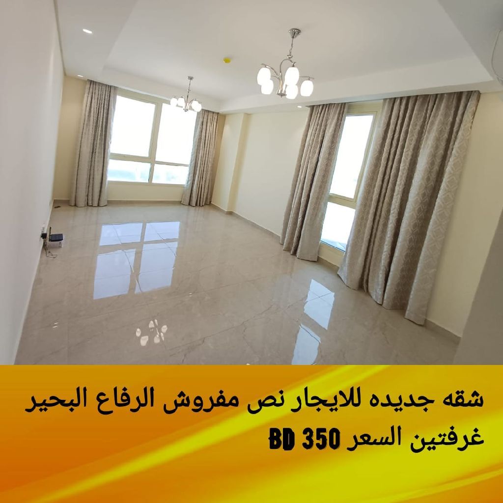 A new apartment for rent, semi-furnished with air conditioners, curtains, an oven, a refrigerator, and a washing machine in Riffa Al Bahri. Prime location, consisting of 2 master bedrooms, 3 bathrooms, a living room, and a kitchen. There is an elevator and a private parking space. Price: 350 BHD. For contact.