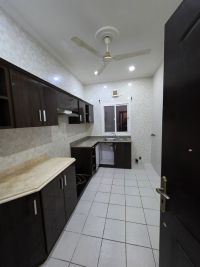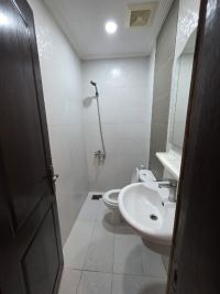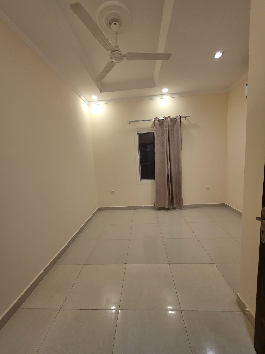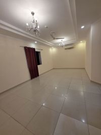 An apartment with air conditioners for rent in Al-Hadd, consisting of 3 rooms, 4 bathrooms, a hall, and a kitchen, priced at 220 dinars.