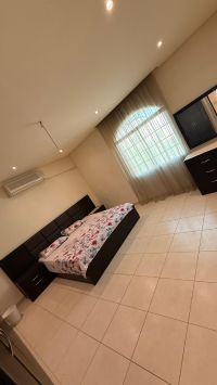 An apartment in a luxurious Bayt Sand building, located in a quiet area close to all services. It consists of First floor a room with a bathroom and a spacious kitchen, a large living room with a guest bathroom. Second floor a room with a bathroom, a laundry area, and space for a washing machine. Parking for two cars in the garage. rent 230BD (electricity not included) Contact us