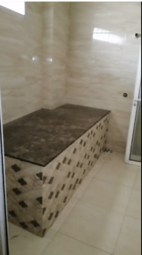 A women's salon for rent in the Adliya area. A commercial apartment suitable for a women's salon activity, with 3 rooms, 2 bathrooms, a large hall, a kitchen, a sauna room, and a storage room. Required: 400 dinars per month, excluding electricity.