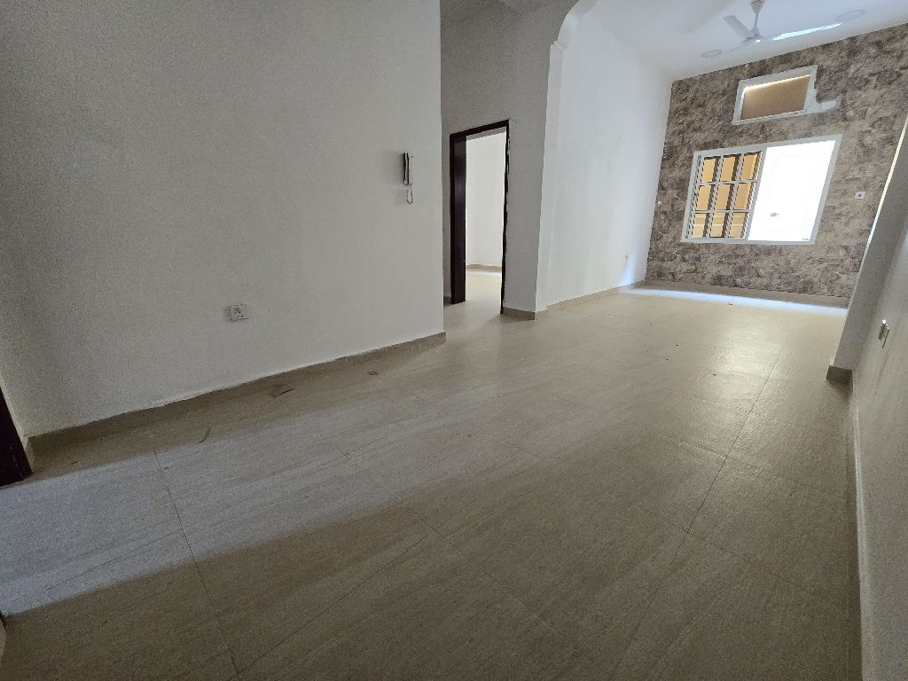 Ground floor apartment for rent in Barbar, near Budaiya Street. The apartment consists of 2 bedrooms, 2 bathrooms, a living room, a kitchen, and a shaded parking space. Rent is BD150. For inquiries.