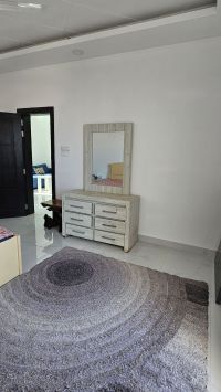 For rent: An apartment with electricity included in Al-Hadd Al-Jadeed near Noah Tower. It consists of two rooms, a hall, a kitchen, a bathroom, a balcony, an elevator, and parking. The required rent is 250 dinars per month (electricity included), with an electricity allowance of 30 dinars.