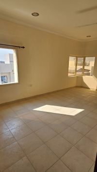 For rent: a spacious apartment in Riffa Abu Quwara near Sharifa Al Awadhi Center. It consists of two rooms, a hall, a kitchen, two bathrooms, and parking. It is on the second floor with no elevator. The required rent is 180 dinars per month (electricity not included).