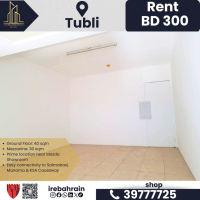 Commercial shop with a mezzanine floor for rent - Tubli - Ground floor 40 square meters - Mezzanine floor 30 square meters - Ideal for multiple commercial activities - Prime location near Mazda showroom - Easy access to Salmabad, Manama, and the Saudi Arabia Bridge - Rent 300 Bahraini Dinars per month - For inquiries, call.