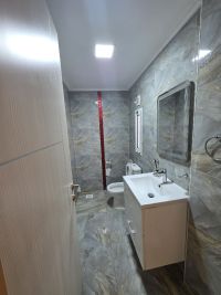 An apartment for rent in Al-Hidd consisting of two rooms, a maid's room, three bathrooms, a kitchen, and a hall for 200 dinars.