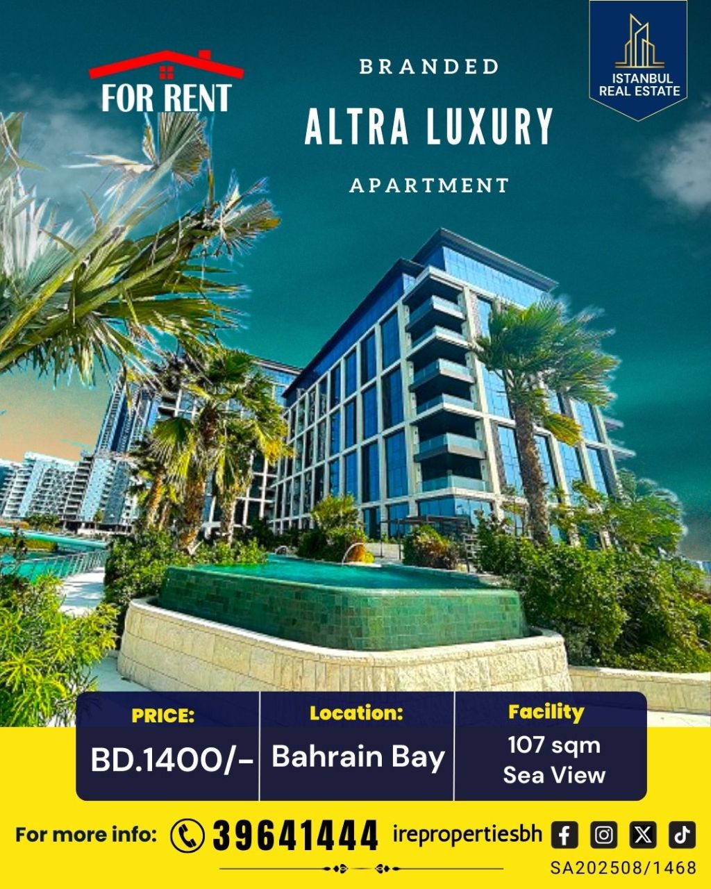 Luxury private residential apartments for rent - Bahrain Bay, where 5-star service meets private living. Area: 107 square meters, sixth floor, with a full sea and city skyline view. Key features: unparalleled luxury, high-quality finishes with smart home automation (automatic curtains), and a spacious living room with a balcony overlooking the sea. The space includes a master bedroom with an en-suite bathroom and custom-designed closets + a laundry room. The kitchen and laundry room are fully equipped.