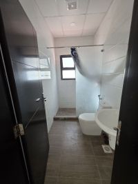 A semi-furnished apartment for rent in Al-Hidd, consisting of two bedrooms, two bathrooms, a kitchen, a living room, a balcony, and a parking space, priced at 240 dinars.