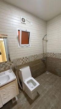 For rent: A spacious apartment including water and electricity with air conditioners in Riffa Al Hajiyat. It consists of four bedrooms, a large living room with a balcony, three bathrooms, a separate majlis with a bathroom, a kitchen, an elevator, and private parking. The price is 370 dinars, negotiable. Contact us.
