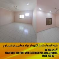 Apartment for rent including electricity and water without an electricity meter in Arad. It consists of a living room, two bedrooms, two bathrooms, a hall, and a kitchen. First floor without an elevator. Price 220. For contact.