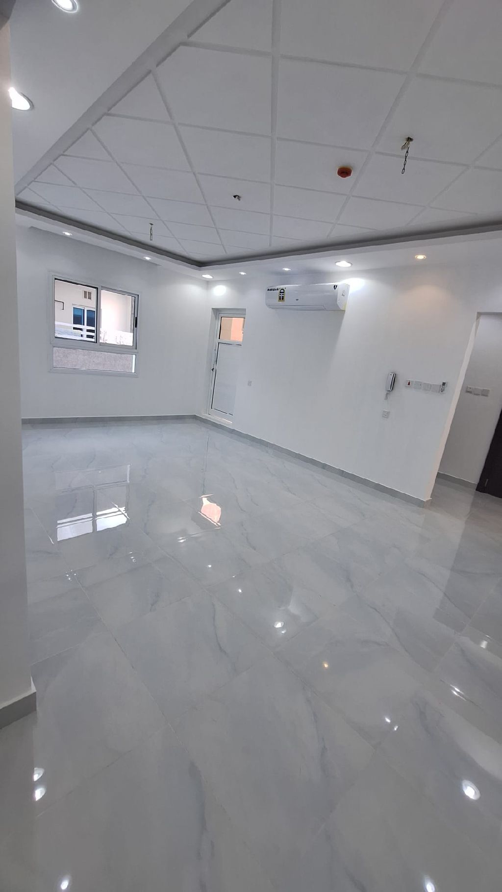 For rent, a new apartment, first occupant, electricity included in Al-Hadd. With air conditioners, 4 bedrooms, 4 bathrooms, kitchen, balcony, large living room, separate majlis. Price 400 including electricity. For contact.