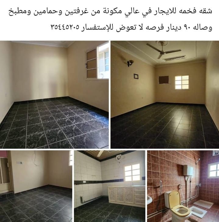 A luxurious apartment for rent in A'ali, consisting of two bedrooms, two bathrooms, a kitchen, and a living room, priced at 90 dinars. An opportunity not to be missed.