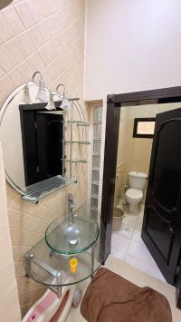 For rent: an apartment on the ground floor in Riffa Bu Kowarah, near Khalifa Park and Al-Marifa School. It consists of three bedrooms, two bathrooms, a lounge, a kitchen, and a garage for two cars. The price is only 220 dinars, excluding electricity. Contact us.