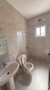 Apartment for rent in Riffa Al-Bahair, near Al-Salam Hospital, first floor with elevator and private parking. It consists of two bedrooms, two bathrooms, a kitchen, a living room, and a balcony. The price is only 230 dinars, excluding electricity. Contact us.